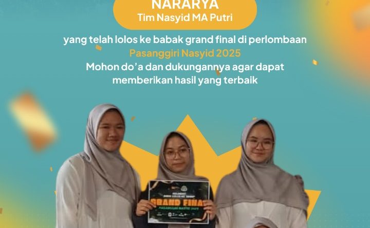 Selamat & Sukes Nararya Tim Nasyid MA Putri yang telah lolos ke babak grand final di perlombaan Pasanggir Nasyid 2025.